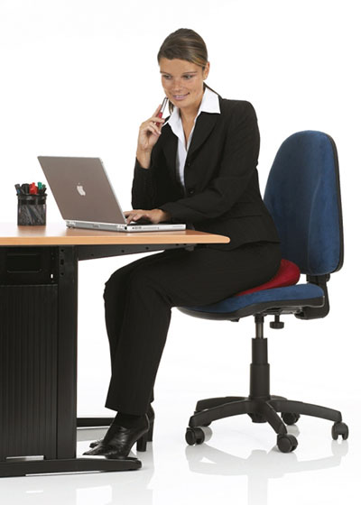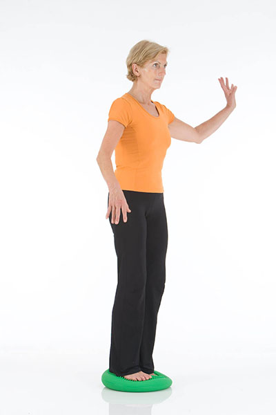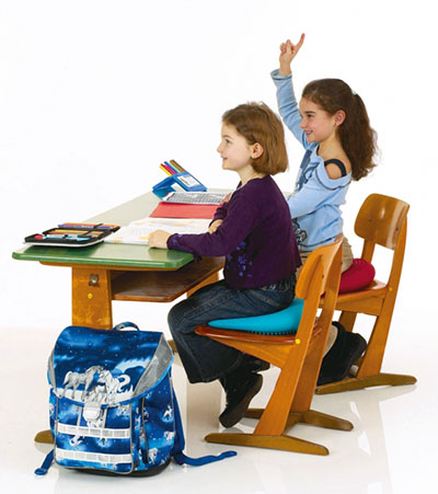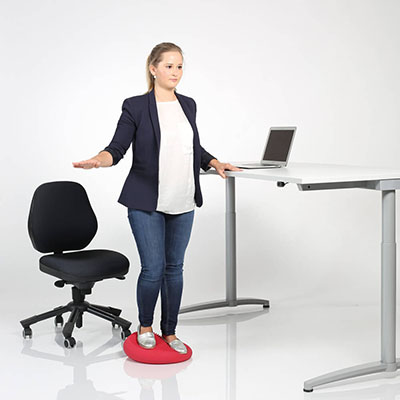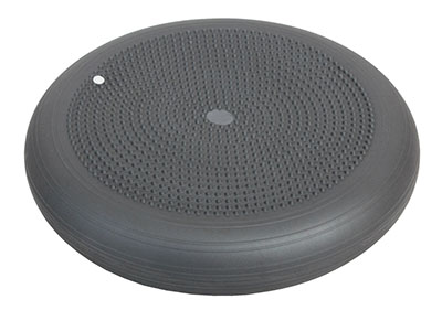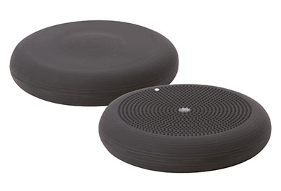 An air-filled seat cushion for active dynamic sitting and for sensorimotor and proprioceptive training. This product comes in retail packaging.