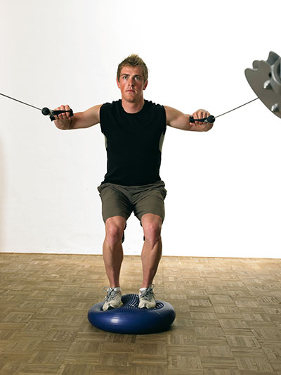 An air-filled seat cushion for active dynamic sitting and for sensorimotor and proprioceptive training.