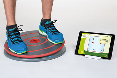 The Togu Challenge Disc provides balance training for all performance levels and ages. It is used to measure and improve balancing and coordination skills. Every move on the Challenge Disc is being measured by an integrated sensor. The built-in motion sensor transfers measurement data to end-devices using Bluetooth 4.0. The result is shown as a score that was calculated based on how well a user was able to keep the disc in a level position while standing on it. Training at various degrees of difficulty can be conducted in a playful way by selecting games that require the user to perform particular moves. The stable base plate and stand plate with anti-slip coating on the surface provide the necessary safety. Patients and athletes can train independently with the Challenge Disc. They are motivated without needing a trainer to be present and instructing them. The user must download the Challenge Disc app on a computer, tablet or mobile device. The Challenge Disc App takes over the coaching task and permits targeted coordination training for legs, back and core. The app can be downloaded for free.