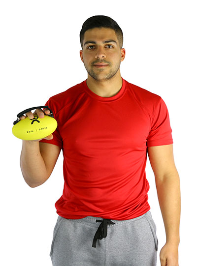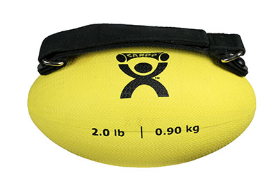 CanDo Handy Grip weight ball offers all the benefits of traditional weight training without using hard-to-hold metal dumbbells. Ergonomic shape makes for easy grasping and textured surface makes it slip-free. Strap ball to hand for added security and for firmer grasp. The strap is adjustable to fit most users. Football shape design with hand strap enables a variety of strength training and functional movements. Available in 6 color-coded weight levels.