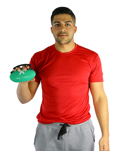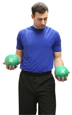 The color coded weighted balls are small enough and flexible enough to grasp with one hand, yet big enough to hold with two hands. Available in 6 weights ranging from 1.1 pounds through 6.6 pounds (0.5 kg to 3 kg.) while maintaining a constant 5" (12.7 cm) diameter. Balls are soft and comfortably conform to your grasp. Use a bicycle pump to inflate/deflate to make ball harder/easier to grasp.