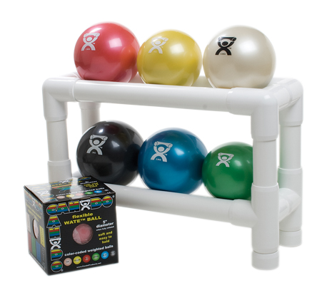 CanDo WaTE Ball - Hand-held Size - 6-piece set (1 each: tan, yellow, red, green, blue, black), with 2-tier rack |