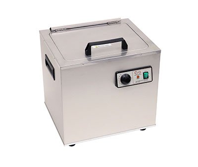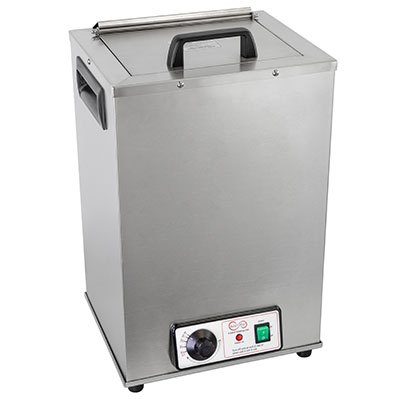 This Relief Pak Heating Unit has the capacity to hold and heat 12 moist heat packs up to 160 degrees in an insulated hot water bath. Moist heat and moist heat packs help treat acute and chronic pain, relieve aches and ease soreness and stiffness. They are ideal for recovery use post-injury and post-workout with a material that conforms to any body part and is pliable when heated. Moist heat is also more effective in deeper tissue heating and penetrates further than dry heat at the same temperature. This heating unit has an adjustable temperature control and features a glowing orange light that illuminates when the unit has reached its desired temperature. For best results, use moist heat packs at 160 degrees. The unit's mobile design with rolling feet allow it to be easily moved across a room, or from room-to-room. This heater, which runs on 220V, can store and heat up to 12 Relief Pak moist heat packs. Comes with a removable plug set and fully illustrated user manual. Made from durable stainless steel that's perfect for high traffic clinics. The unique insulated design retains heat and prevents the exterior from becoming too hot and burning users. The on/off switch glows green when the unit is in use. Once drained, the unit is easy to clean. Use a soft cloth, sponge or non-abrasive cleaning pad to wipe down the unit and mild soaps and non-abrasive detergents to clean the surfaces. Do not use steel wool, bleach or cleaners with high chlorine contents. Versatile Relief Pak Heaters and Moist Heat Packs are designed for use at home or in multi-user environments. That's why they're highly recommended by physiotherapists, physicians, chiropractors, athletic trainers and kinesiologists.