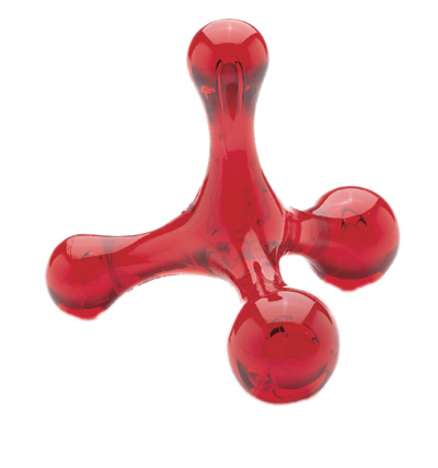 The knobs of the four legs of the Jacknobber II massage tool can be used in many ways to apply deep pressure to myofascial trigger points and areas of muscle tension. Equally comfortable in small or large hands. Even children enjoy its ergonomic shape! The smaller knobs provide more intense pressure while the larger knobs provide a more diffuse pressure. Use one knob at a time to press deeply into taut bands with embedded trigger points. Use two knobs at a time on either side of the spine. Use all three to gently sweep across broad muscles of the back, glutes, legs, shoulders and torso. Best used over lightweight clothing. Arguably this is the most satisfying and easy to use hand held massage tool available. Comes red in color and is proudly made in the USA.