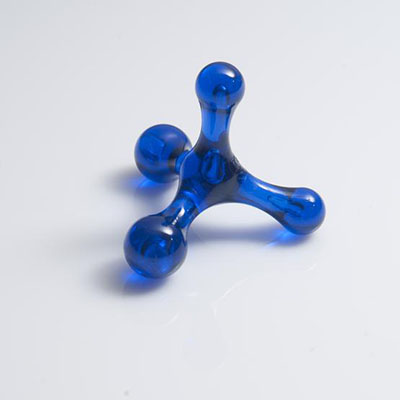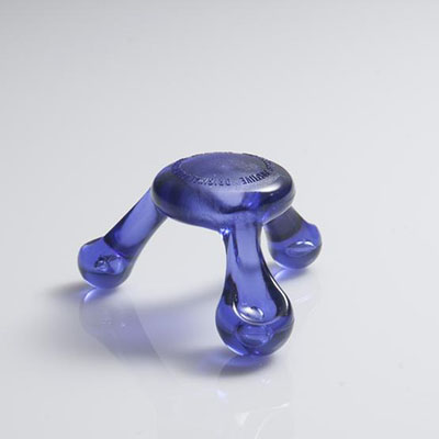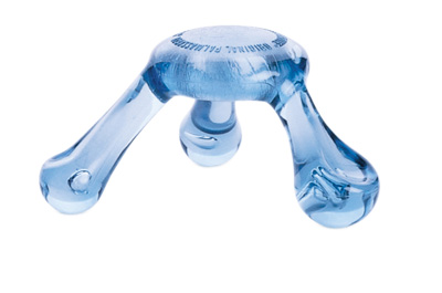 The knobs of the four legs of the Jacknobber II massage tool can be used in many ways to apply deep pressure to myofascial trigger points and areas of muscle tension. Equally comfortable in small or large hands. Even children enjoy its ergonomic shape! The smaller knobs provide more intense pressure while the larger knobs provide a more diffuse pressure. Use one knob at a time to press deeply into taut bands with embedded trigger points. Use two knobs at a time on either side of the spine. Use all three to gently sweep across broad muscles of the back, glutes, legs, shoulders and torso. Best used over lightweight clothing. Arguably this is the most satisfying and easy to use hand held massage tool available. Comes blue in color and is proudly made in the USA.