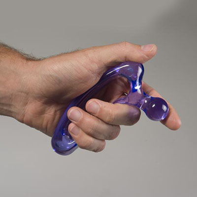 The Original Index Knobber II massage tool is a simple device designed to let you apply deep pressure to muscles within easy reach of your hand. It is the ideal instrument for clinic or home use allowing for firm, sustained pressure on targeted muscle. It is as safe and effective as massaging a sore muscle with your own knuckle or thumb. It's unique patented design allows it to be used in several hand positions and by the right or left hands comfortably and interchangeably. Comes purple in color and is proudly made in the USA.