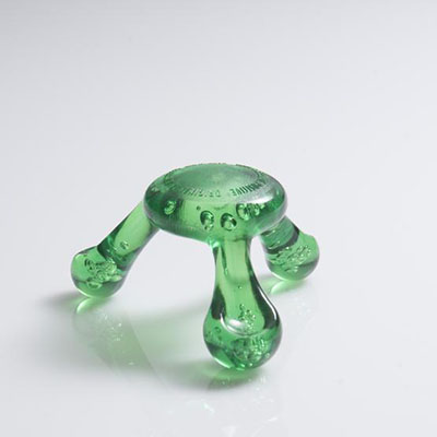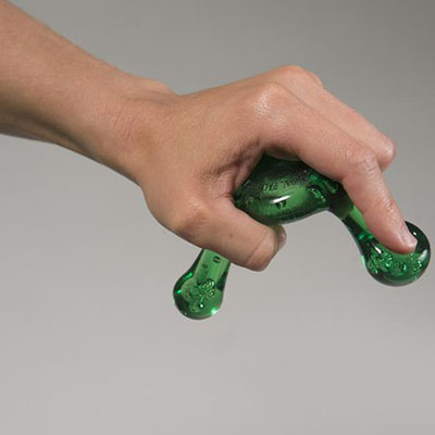 The Original Palmassager is one of the most efficient massage therapy aids available and gives your palm and thumb joint a little extra support. Hold it firmly in the palm of the hand and use one, two or three of its round knobs to massage sore muscles. Ergonomically placed finger holds at each leg base for optimum comfort and control. Comes green in color and is proudly made in the USA.