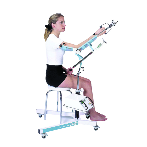 Kinetec Centura CEM provides anatomically correct elbow extension/flexion in an abducted position. Quick and easy change-over from an existing shoulder pattern. ROM: extension 10 degrees and flexion 135 degrees. Extension with fixed, adjustable pronation/supination in an abducted, rotated plane.