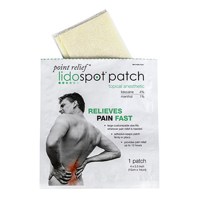 LidoSpot pain relieving patches provide long-lasting pain relief from back, neck, joint and muscle aches, soreness, pain and discomfort. Each patch contains the highest permissible amount of lidocaine (4%) without a prescription and 1% menthol. The patches prevent nerves from sending pain impulses to the brain, providing relief when it's needed most. Used after pain treatment regimens, the patches provide relief for up to 12 hours. This is a pack of 5 patches. At 4"x6", the patch is large enough to fit areas such as the back or thigh. Ideal to use during pain-treatment regimens to provide temporary relief. The patches can easily be cut to a customized size and shape for hard to treat areas such as the wrist or elbow. Strong adhesive ensures the patch stays on during physical activity. These transdermal patches are non-habit forming.