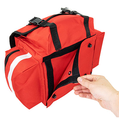 Deluxe EMS Medical First Responder First Aid Kit by LINE2design is equipped with zippered pockets on each end, convenient pockets inside and one front pocket complete with elastic loops. This bag has been redesigned with a new internal divider and padded bottom that are completely removable for easy cleaning and configuration. The First Responder EMS Trauma Bag is fully structured and designed not to lose its shape. This bag provides the greatest organization and durability necessary for all first responders, and is a great bag for making first aid kits, first responder kits, burn kits, jump bags, etc. It has been fitted with new feet on the bottom of the bag, a top flap with buckles for quick access, a padded 3-section main compartment, new white reflective trim, and Star of Life printed on the top flap. Size: 17" L x 8" W x 10".?First-Aid Products Included: 20 Waterproof Adhesive Bandages, 2 Emergency Mylar Blanket 52' x 82", 1 Triangular Bandage 40"x 40" x 56", 2 CPR Mask Face Shield, Clear, 1 EMT Shears 7.5", 1 Disposable Diagnostic Penlight, 1 Dressing Forceps 4" Stainless Steel, 2 Elastic Bandages 3"x 5 yards, 2 Rolls Clear Tape 1" x 10 yards, 4 Conforming Stretch Gauze 2" x 4.1 yards, 4 Conforming Stretch Gauze 3" x 4.1 yards, 2 Conforming Stretch Gauze 4" x 4.1 yards, Red Biohazard Waste Bag, Twist Ties (White 4"), 1 Sterile Multi-Trauma Dressing 12" x 30", 2 Instant Cold Packs 6" x 9", 2 Instant Hot Packs 6" x 9", 20 Antiseptic Towelettes, 20 Alcohol Prep Pads, 6 Nitrile Exam Gloves, CPR Rescue Mask Red, 1 Flexible Splint - Orange 4.25" x 36", 5 Germicidal Wipes, and 2 Disposable Towels 13"x18".