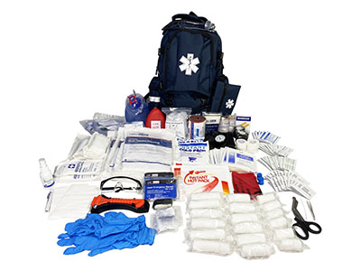 ?The Emergency Medical Service (EMS) Backpack by LINE2design, Inc. is one of the highest quality EMS backpacks on the market.?Includes: 20 Waterproof Adhesive Bandages, 2 Emergency Mylar Blankets, 1 Triangular Bandage, 2 CPR Clear Masks, 1 EMT Shears-Black 7.5", 1 Disposable Diagnostic Penlight, 1 Dressing Forceps 4", 2 Elastic Bandages 3", 4 Clear Tape 1", 6 Conforming Stretch Gauze 2", 6 Conforming Stretch Gauze 3", 6 Conforming Stretch Gauze 4", Red Biohazard Waste Bag 14"x19", Twist Tie, White 4", 2 Sterile Multi Trauma Dressing 12"x 30", 2 Instant Cold Packs, 2 Instant Hot Packs, 20 Antiseptic Towelettes, 20 Alcohol Prep Pads, 6 Nitrile Exam Gloves X-Large, 1 CPR Rescue Mask, 1 Flexible Splint, 5 Germicidal Wipes, 2 Disposable Towels 13"x18", 1 Burn Sheets 60"x90", 1 Sprague Stethoscope, 1 Adult Blood Pressure Cuff, 1 Adult BVM Resuscitator Mask, 2 NRB O2 Masks, 1 Berman Oral Airway Kit, 1 Safety Glasses, 1 Reusable Tourniquet 1"x40cm, 2 Latex free Tourniquets 1"x18", 1 Lifesaver Hammer, 1 Burn Spray 2 oz., 2 Quick-Stopper Gauze Bandage, 20 Sting Relief Medicated Pads, 10 4x4 Gauze Pads, 2 Sterile Combine ABD Pad 5"x9", 2 Cohesive Elastic Bandage-Black 2"x5 yards.