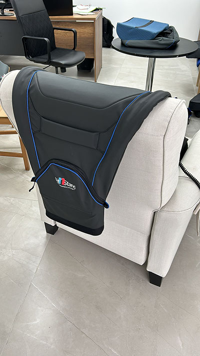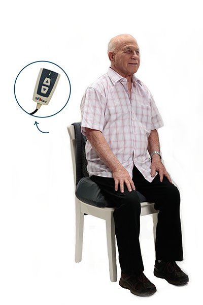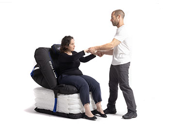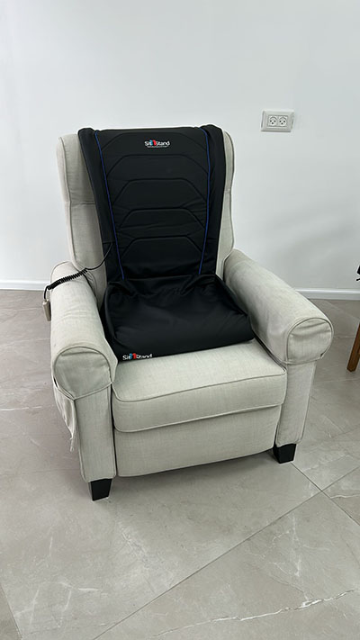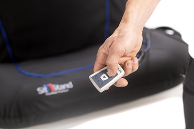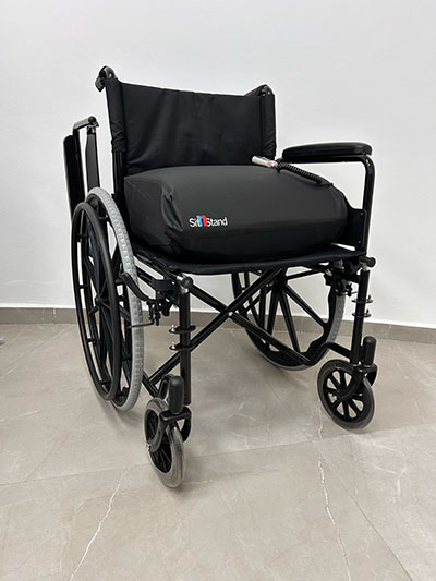 The SitnStand Lift Assist for Wheelchair PRO Edition is a portable rising seat that was designed to promote mobility among people who are challenged in transitioning from sitting to standing positions, due to aging, chronic illness, or disability, empowering independence while reducing the risk of falls and injury. The PRO Edition is incontinent and can be sterilized from patient to patient. Made with medical-grade, incontinence-compatible materials that are easy to disinfect, ideal for clinical use. SitnStand for Wheelchairs is a sit-to-stand lift chair for wheelchair users. This easy, simple, and safe-to-use chair lift assist is patent pending and suitable for any type of wheelchair and was designed to make transferring a person to and from a wheelchair as seamless and independent as possible. Regain a grasp on independent living, with SitnStand for Wheelchairs. This lift chair for the elderly and those who use wheelchairs to assist in daily mobility is a must-have wheelchair accessory for those looking to sit down and stand up from their wheelchairs, safely and independently. Now, you can transfer yourself to and from your wheelchair and comfortably navigate your home, outdoors, and beyond, with grace, dignity, and confidence. One of the greatest concerns regarding wheelchair accessories is whether they are comfortable enough to use, without creating friction, or having to be installed and removed, over and over again. SitnStand for Wheelchairs is the ultimate lift chair for wheelchair users; you can go wherever you want, whenever you want, without worrying about how you'll get up and down, and without so much as feeling the wheelchair transfer aid, as you go about your daily activities. It has a weight capacity of 400 lbs. and features a handheld remote to give you full control of the inflatable seat. No more shifting in your seat or rubbing sore spots after a trip to the doctor or the park. Made from viscoelastic memory foam, SitnStand for Wheelchairs promotes comfortable sitting, for hours on end. Now, you can take on the town, fully confident that your wheelchair and its accessories will help you have an enjoyable, comfortable, and maximally independent day. The transferring of wheelchair-bound people from wheelchair to bed can be a physically strenuous procedure, but with SitnStand for Wheelchairs, your caregivers can stand back, care for their backs, and watch as you perform an independent transfer from your wheelchair to your bed. It's the wheelchair transfer solution that you've all been waiting for! Fits most wheelchairs (17 - 21" wide). Included with the SitnStand Lift Assist for Wheelchair is a rechargeable battery and battery charger.