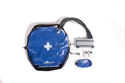 The FloorRiser Active is your fast, stable, and solo-operable solution. It is a portable floor lift assist device that helps individuals stand up after a fall with the help of a caregiver - no need for 911 or emergency services. Using the device is remarkably simple. When someone has fallen, you slide the device beneath them, and with the push of a button, it gently lifts them up. Once they're ready, help them stand, then deflate and fold the unit for next time. With a 29-inch lift height, 600 lb. capacity, and a compact backpack design, it's the dependable fall recovery solution for homes, travel, and care settings. Built for rehab teams, acute care environments, and first responders, it's designed for safe floor recovery - anywhere, anytime. Included with the main device with premium comfort padding are 2 Rechargeable Li-ion batteries and a fast wireless charger with 3-foot cable.