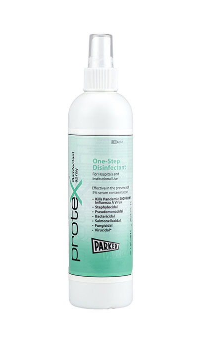 Effective and efficient disinfecting has never been more important. That's why this Protex Disinfectant Spray from Parker Labs is found in so many medical offices and hospitals. This powerful one-step cleaner and disinfectant combo is effective against a broad spectrum of pathogens including MRSA, HIV, H1N1, Staph and many others. Protex Disinfectant Spray has also proven effective in fighting COVID-19, a Human Coronavirus. When used on hard, non-porous surfaces in accordance with the included directions, the spray kills Covid-19 along with a wide variety of similar viruses. It is also effective in the presence of 5% serum contamination. The handy and convenient spray top allows each press to produce enough disinfectant to cover a significant area. This is a case of 48 (forty-eight) 12 oz. bottles of Disinfectant Spray. Not just for furniture, this spray is ideal for disinfecting equipment too. Use on transducers and probes, mammography compressor plates, dental equipment and more. This spray is at home in emergency vehicles, exercise facilities, school nurse offices and locker rooms. Ideal for use on vinyl exam tables, athletic mats, exercise equipment, counter-tops and other non-porous surfaces. Protex Disinfectant Spray is alcohol, bleach and solvent free. Accepted for use by manufacturers of ultrasound equipment.