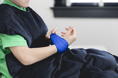 The Focus Fidgety from Sommerfly is a practically designed hand fidget that's ideal for anyone who has a hard time focusing, keeping their hands to themselves, and wants the comfort of a simple but effective stress relieving squeeze tool. Made from soft, 100% cotton corduroy, which gives the Fidgety an extra tactile sensation. It's then filled with PET pellets for that just right feel that's an invitation to fidget. Appropriate for both adults and kids alike in any social or education situation, it helps increase attention and calmness. Designed to be helpful for children, adolescents and adults, this Navy-Blue unit is sized Small, 3" x 4", and is appropriate for children and people with smaller hands. Designed with a non-Latex elastic band that keeps the Focus Fidgety around the wrist and prevents drops. The PET pellets are made of non-toxic BPA and are phthalate free. Designed specifically to have a non-toy look, it's small enough to carry in a pocket or purse. Features a finger loop that helps it stay on the hand. Easy to clean as the Focus Fidgety is machine washable. It's also made in the USA.
