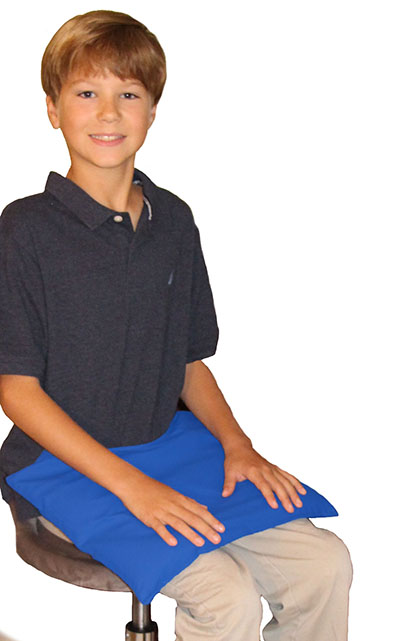 The Sit Tight Wipe-Clean Weighted Lap Pad is a hospital grade device perfect for locations where machine washing is unavailable or inconvenient. Contoured at the waist to fit the body without bunching up, this lap pad, provides a deep pressure touch on the lap that's ideal for both children and adults looking to improve focus, increase attention span and stay seated longer. Smaller than a weighted blanket and designed to stay on the lap while seated, this is the perfect device to help get and retain focus for sit down tasks and to stay calm for activities. The Wipe-Clean features fabric that is waterproof, breathable, tear resistant, anti-microbial and pleasant to touch. This Royal Blue Sit Tight is sized Small and weighs 3 lbs. It is 17" x 14" and ideal for an individual who weighs between 20-40 lbs. The Sit Tight works great on its own or complements other weighted items such as shoulder wraps or wrap arounds. The Wipe-Clean is flame resistant (Class A Barrier) and non-toxic. Because it is not machine washable, each package contains a detailed list of cleaning and disinfecting instructions. So versatile, the Sit Tight helps with desk work, mealtime or whenever calm sitting time needs to be found or increased. The Sit Tight is made in the USA.