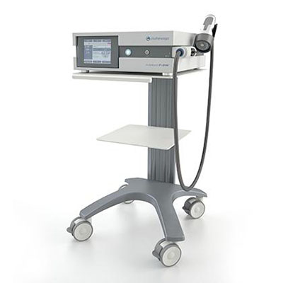 The Intelect Focus Shockwave is a non-invasive treatment option for patients with heel pain due to chronic proximal plantar fasciitis. This device electromagnetically generates an extracorporeal shock wave, which produces a high-pressure peak in a very short amount of time (< 2 mus). Thus, allowing for precise and target application of heel spur at a depth of 1 inch. The shock wave is focused to a small targeted area through the reflector and transmitted deep into the tissue. This Focus Shockwave features an easy to control LCD touch screen, 2 stand-off variations, 4.7" penetration with pinpoint focus and is easily portable. The standard accessories include the the water bag, silicone oil, operating manual cd, handpiece holder, stand-ff I and II as well as the close ring.
