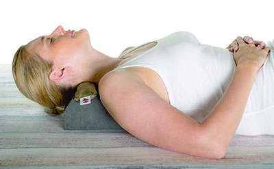 So many daily activities affect our posture, placing your head and neck in a detrimental forward head position. This can be attributed to looking down at handheld devices, sleeping with your head elevated excessively, poor posture, or an acute injury such as whiplash. Using the Apex Premium with Heat daily, under the direction of a health care professional, counteracts forward head posture to help relieve headaches and neck pain associated with whiplash injury, tech neck, and other neck injuries. It provides firm support to place the neck in a proper position to help reestablish a proper cervical curve that has been diminished as a result of forward head posture. The unique wedge extension provides support to the upper thoracic spine for comfort and allows the shoulders to drop, stretching the chest and neck muscles. Opening the chest in this manner promotes breathing and facilitates relaxation. The provided MicroBeads Moist Heat Pack sits in a channel at the apex of the wedge, ensuring targeted moist heat therapy to the cervical tissue. Studies indicate increasing the temperature of the tissue to be stretched improves elasticity of muscles and ligaments, extending range of motion. Made with a plush fabric cover, the MicroBeads Moist Heat Pack is soft to the touch and gentle on the skin. The microbeads adsorb moisture from the air and release it when heated. To warm up the heat pack, simply place the pack in the microwave for 10 seconds, then at 5 second intervals until the desired temperature is reached. The reusable pack will maintain therapeutic temperature for about 20 minutes. The MicroBeads are scent and drug free, and do not support the growth of bacteria or contain common allergens like herbal or grain-based packs. The Apex Cervical Orthosis Premium with Heat is an effective tool to assist the health care professional in restoring a patient's proper cervical lordosis. It is latex free and is proudly made in the USA. To clean, simply use a damp towel and mild soap, if necessary, to spot clean.