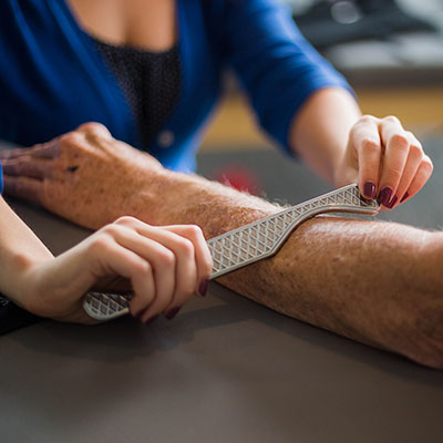 The palm sized "Shark" tool by SMART Tools is designed with the patient in mind by providing them with instant muscle relief, improved flexibility and faster recovery. It is ideal for use on smaller areas of the body such as hands, feet, forearms, and calves. The sloped design offers comfort for the practitioner, while maintaining versatility with its double beveled edge for management of smaller areas of the body. It is made of a durable and premium medical-grade stainless steel. The reduced friction allows for support of sensitive skin. Making this an effective treatment tool for soft tissue and scarring brought on by surgeries, injuries, and overuse of muscles.