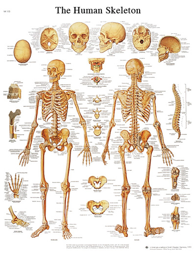 Anatomical Chart: Human Skelton; chart measures: 20x25in. 50x67cm. Laminated.