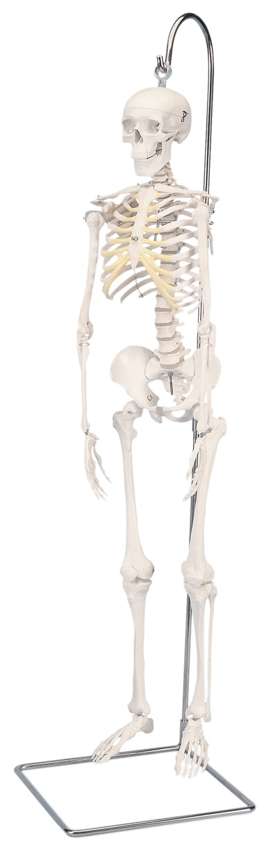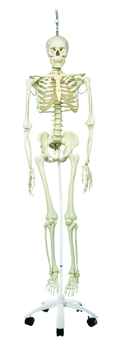 Stan is a Classic full-size skeleton model. Used in hospitals, schools, universities, and laboratories for over 50 years. The skeleton is ideal for active use in teaching and demonstrations. The skeleton is waist mounted on a metal roller stand (painted white). Measures at: 69.5" and 21.1 lb. Features: 3-part skull, individually inserted teeth, removable arms and legs, natural cast, transparent dust cover and 3 year guarantee. Now included with all 3B Scientific Anatomy models is the 3B Smart Anatomy app. This app allows users to register their 3B item to extend the warranty from 3 to 5 years plus free 1 year access to the 3B Smart Anatomy app which includes 23 Anatomy lectures, 117 interactive models and 39 quizzes.