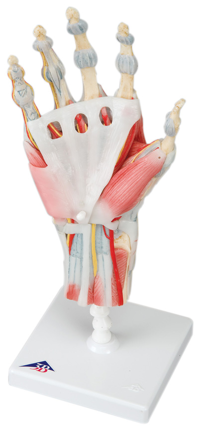 3B Scientific Anatomical Model - hand skeleton with removable ligaments & muscles, 4-part - Includes 3B Smart Anatomy: