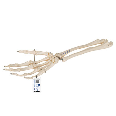 3B Scientific Anatomical Model - loose bones, hand skeleton with ulna and radius (wire) - Includes 3B Smart Anatomy:
