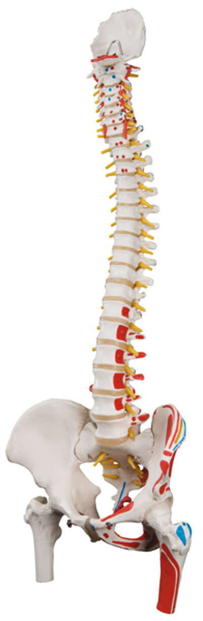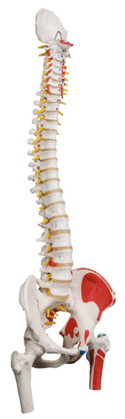 Spinal column models are flexible and designed for hands-on demonstrations. Features male pelvis and occipital plate, L3-L4 disc prolapsed, spinal nerve exits, cervical vertebral artery. Also features movable mounted femur heads and muscles painted on model. Stand is not included. Now included with all 3B Scientific Anatomy models is the 3B Smart Anatomy app. This app allows users to register their 3B item to extend the warranty from 3 to 5 years plus free 1 year access to the 3B Smart Anatomy app which includes 23 Anatomy lectures, 117 interactive models and 39 quizzes.
