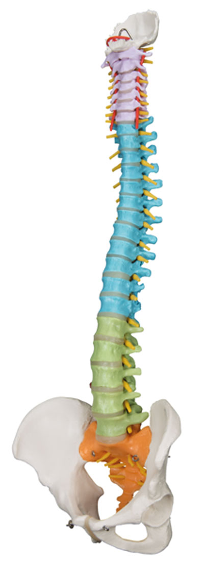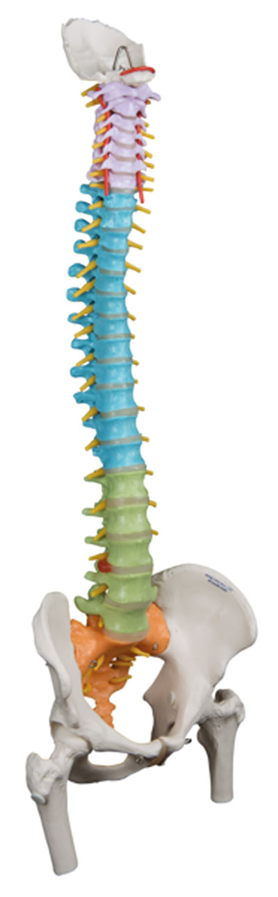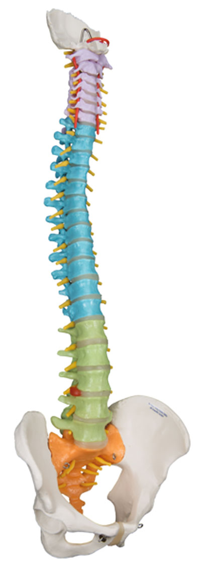 Spinal column models are flexible and designed for hands-on demonstrations. Features male pelvis and occipital plate, L3-L4 disc prolapsed, spinal nerve exits, cervical vertebral artery. Also features movable mounted femur heads. Didactic model has the same features of the Classic Spine, as well as Didactic painting to differentiate the five sections of the spinal column. Stand is not included. Now included with all 3B Scientific Anatomy models is the 3B Smart Anatomy app. This app allows users to register their 3B item to extend the warranty from 3 to 5 years plus free 1 year access to the 3B Smart Anatomy app which includes 23 Anatomy lectures, 117 interactive models and 39 quizzes.