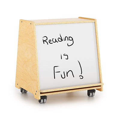 Perfect for toddler story time! This nifty little cabinet features a better quality non-ghosting marker board with an angled cleat to hold markers and an eraser or to display books at just the right level for small children to read along. In back, the six removable dividers provide organized storage for really big books. The cabinet is tapered for stability and mounted on four heavy duty non-locking casters for mobility. Pairs perfectly with our WB0096 Rolling Teacher Seat [sold separately]. Need a bigger solution for preschoolers? Check out our WB6255 Big Book Display with Markerboard [sold separately].