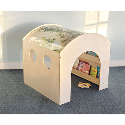 Another innovative Whitney Brothers oasis for children! The biophilic design of this reading space features a unique curved acrylic roof imprinted with the realistic image of a spreading tree canopy that beckons children inside for a peaceful break yet provides easy visibility for adult supervision. The cozy interior features two built-in book display shelves on one side panel, viewing cutouts on the opposite panel and tunnel openings on each end panel that provide easy access and maximum visibility of children inside. Bring nature indoors and create a delightful quiet space that children will love! Coodrinates seamlessly with all other pieces in our award-winning biophilia inspired Nature View Collection [each piece sold separately].