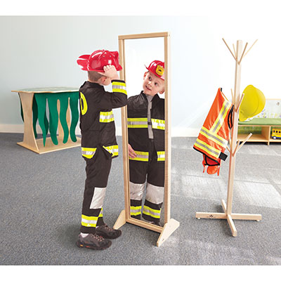 Mirrors are an essential furnishing in every Early Learning room environment to help young children develop self-awareness, self-esteem and cognitive function. This mirror is constructed in safe, shatterproof acrylic and mounted in a sturdy hardwood maple frame with attachable feet that enable it to stand either vertically or horizontally.