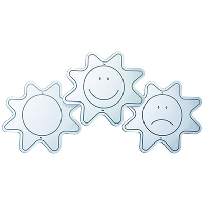 Mirrors are important tools that help to build a young child's self-awareness, self-esteem and cognitive development, and that's why our Mood Mirrors are essential furnishings for every Early Learning classroom. The facial features of our Mood Mirrors are etched into safe, shatterproof acrylic and help a child identify, understand and express their own mood or the mood of other children. The set includes one each of the following: WB0035 Happy Face Mirror, WB0036 Sad Face Mirror, WB0037 How Do I Feel Today? Mirror. Attach to a wall or other surface [mounting hardware not included] or can be hand held.