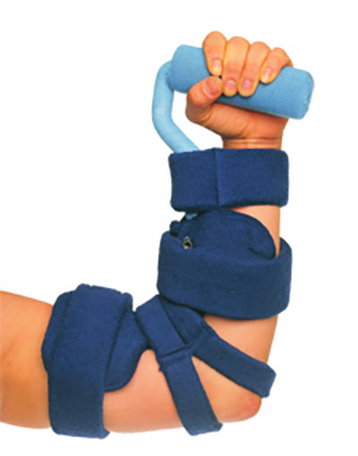 Comfy Splints Elbow and Hand Combination Orthosis. The two part internal frame of the ComfySplints Elbow and Hand Combination Orthosis?allows for simultaneous extension of the elbow and hand and accounts for upper extremity flexion synergy. Hand can accommodate pronation and supination. Improves range of motion and positioning for functional use and prevents flexion contractures. Fully adjustable. Supinated hand can be rotated to accommodate to neutral. Ideal for the gradual extension of clenched fingers, wrist or hand and to aid with the spastic. Useful in the treatment of deformities caused by CP, CVA, disuse atrophy or neurological disorders. Two separate components combine to form one splint (two part reimbursement coding suggested). Comes standard with Full Hand attachment (FH), but is also available with Hand Roll attachment (HR) or Hand Thumb attachment (HT) depending on user need. Elbow can be ordered with a goniometer (GE-101).