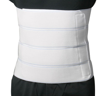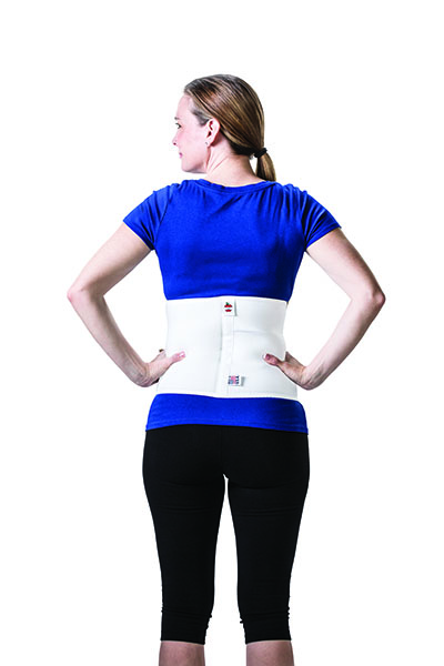 The Abdominal Binder gently supports the belly to promote healing after abdominal injury or surgery; ideal for use after a caesarean section, bariatric surgery, exploratory laparotomy, hysterectomy, tummy tuck, or some spinal surgeries to help support the abdomen and maintain proper intra-abdominal pressure. This low profile support helps supplement the abdominal muscles and ligaments weakened by: injury, surgery, postpartum, or loss of muscle tone. By gently compressing the abdomen, this support helps reduce strain on an incision. It also provides mild back support and can also be used to wrap the abdomen after delivery for tummy reshaping. Made from 12 inch high elastic material that stretches and contracts, this support contours to the natural shape of the body for increased comfort. The plush hook and loop material provides light support for the back while the durable, multi-tiered elastic material hugs the belly to help prevent the support from slipping, bunching, or rolling during daily activities. Soft elastic CorEdge finish on top and bottom edges offers added comfort and flexibility.