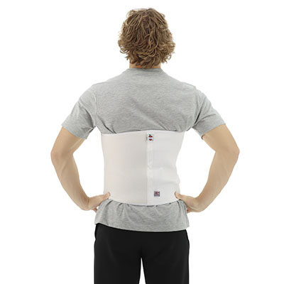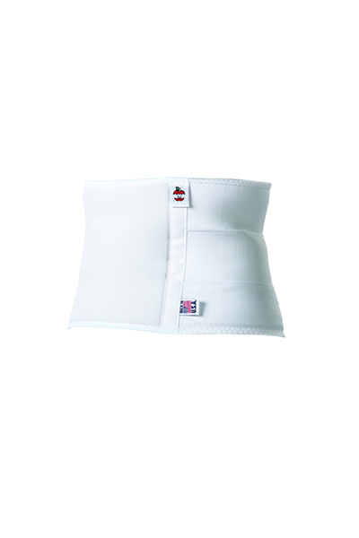 AliMed Four Panel 12"H Abdominal Support braces abdomen to reduce muscle fatigue and strain. Reduces musculoskeletal vibration caused by driving, sports, and physical labor. Evenly distributes compression. Hook-and-loop closure. Hand wash. Air dry. Not made with natural rubber latex. White. Sizing: SM/MD fits waist circumference 30"-45". LG/XL fits waist circumference 46"-62".