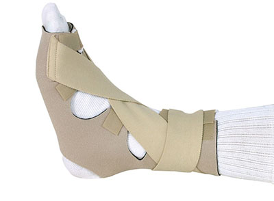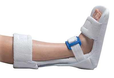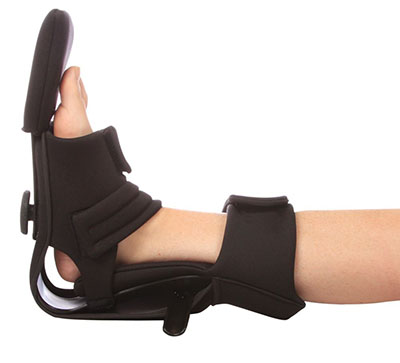 Soft PF Night Splint This soft night splint comfortably holds the foot in dorsiflexion to limit the morning pain and stiffness associated with plantar fasciitis. Low-profile, soft design makes it more comfortable to sleep in and even allows for safe nighttime ambulation. Lightweight, compact, and foldable, this night splint is ideal for traveling. Neoprene boot fastens securely with hook-and-loop fasteners so it won't slip. Straps can be used in multiple configurations for maximum stability and effectiveness. Set foot at 0 degrees or in dorsiflexion for added stretch. Fits left or right. Sizing: Small fits Women's shoe size 5 - 9. Medium fits Women's 9 - 11, Men's 7 - 10. Large fits Men's 10 - 13.