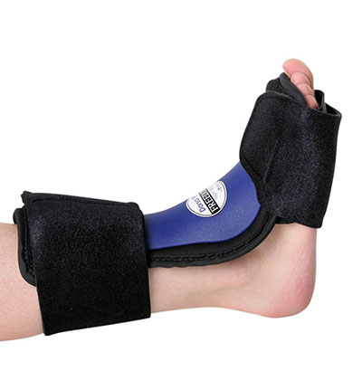 AliMed Original PF Night Splint Chronic pain from plantar fasciitis is often worse in the morning. Many professionals believe the pain is the result of contractures and muscle tightening while sleeping. Studies have demonstrated that sleeping in a night splint can materially lessen morning pain. The painful stretching process is eliminated by avoiding footdrop and accompanying muscle tightening.The footplate is set in 5 degrees dorsiflexion. The strap at the instep ensures that the foot sits in registration with the splint. Strap pads protect leg and instep from pressure. Liner included. Splint fits left or right foot. Specify size, see sizing below. Sizing: Small fits Women's shoe size 4 to 7-1/2. Medium fits Women's shoe size 8 to 10, Men's 6 to 8-1/2. Large fits Women's 10-1/2, Men's 9.