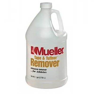 Mueller Tape & Tuffner Remover removes pre-tape spray and adhesive particles from the skin, countertops and taping benches. This remover comes in a gallon container.
