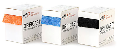 Orficast Thermoplastic Tape features thermoplastic threads knitted with cotton weave. It feels soft and its comfortable for the client. Orficast More Thermoplastic Tape is double the thickness of standard Orficast. This added thickness avoids the need to use two layers, and provides a longer working time.