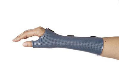Orfilight Atomic Blue NS material has a non-stick coating which prevents the material from sticking onto bandages or cotton lining. This material is easy to make circumferential designs that can pop apart when cooled. Ideal for lightweight, supportive orthoses. The material has easy to trim edges and a soft foamy feel for patient comfort. The item shown is Orfilight Atomic Blue NS, 18" x 24" x 1/8", mini perforated. It is available with 3.5% surface perforation.