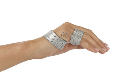 Orfit Colors NS offer a selection of bright colors that appeal to patients of all ages. Its color can boost patient morale and improve compliance with splint wear. Its material has a non-stick coating that is extremely comfortable and allows for temporary bonding during application. Permanent bonding is possible by removing the coating and using dry heat. Very precise molding conforms to patient anatomy with accurate molding improves correct dispersion of skin pressure. Use it for fabrication of very small to very large orthoses including small finger orthoses, thumb orthoses, hand orthoses, wrist, wrist/thumb, elbow orthoses, cervical collars, toe orthoses, fracture braces. Orfit Colors NS is also completely re-moldable and can be adjusted easily after reheating locally to avoid wasted of material. It is available in non-perforated, mini perforated, and micro perforated options. The item shown is Orfit Colors NS, 18" x 24" x 1/12", micro perforated, sonic silver, metallic. It is available with 13% surface perforation.