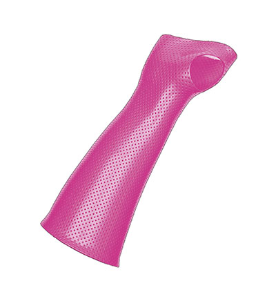Orfit Colors NS offer a selection of bright colors that appeal to patients of all ages. Its color can boost patient morale and improve compliance with splint wear. Its material has a non-stick coating that is extremely comfortable and allows for temporary bonding during application. Permanent bonding is possible by removing the coating and using dry heat. Very precise molding conforms to patient anatomy with accurate molding improves correct dispersion of skin pressure. Use it for fabrication of very small to very large orthoses including small finger orthoses, thumb orthoses, hand orthoses, wrist, wrist/thumb, elbow orthoses, cervical collars, toe orthoses, fracture braces. Orfit Colors NS is also completely re-moldable and can be adjusted easily after reheating locally to avoid wasted of material. It is available in non-perforated, mini perforated, and micro perforated options. The item shown is Orfit Colors NS, 18" x 24" x 1/12", micro perforated, bright pink. It is available with 13% surface perforation.