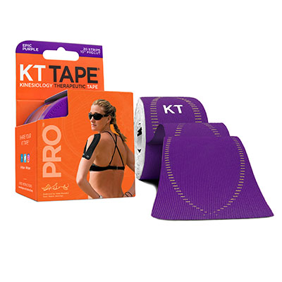 When you're ready to stop having pain and injury slow you down, preventing you from reaching your potential, put down the excuses and pick up the KT Tape. No matter if it's training to get through your first marathon or just trying to get through the day, KT Tape provides the pain relief and support needed so you don't slow down. KT Tape is lightweight, comfortable to wear and can be used for many common injuries from neck and shoulder strains and pains all the way down to shin splints, Achilles tendonitis and nearly every injury that can affect muscles, joints and tendons in-between. KT Tape is an elastic sports tape that relieves pain while supporting muscles, tendons and ligaments. When applied correctly, KT Tape reduces pressure to tissue which reduces discomfort and pain. It lifts the skin, decompressing the layers of fascia, allowing for greater movement of lymphatic fluid and helping to remove waste products, cellular debris and bacteria. That's why KT Tape is used by and relied upon by professional athletes, athletic trainers and medical professionals. KT Tape is also used heavily in the Olympics by Team USA. Made from 100% synthetic fibers that are highly breathable, KT Tape is designed to excel in the harshest environments, for multiple days, through multiple workouts, wet or dry, hot or cold. Additionally, the acrylic based medical grade adhesive is gentle on skin, unlike traditional athletic tape. This package holds 20 (Twenty) 10" strips of Epic Purple colored KT Tape Pro. In addition to pain relief, taping provides support to muscles by helping them to not over-extend or over-contract. KT Tape has more than 60 instructional videos available online teaching how to correctly apply the tape to support various body parts and to help with various injuries. The strong elastic core retains its elasticity far better over time than cotton kinesiology tape. This means it will provide stronger support, for as long as you need it, remaining comfortable for up to 7 days. So durable, KT Tape will stay on in water be it the shower, the pool or the ocean. For best results, apply KT Tape one hour before activity and after you've first cleaned the skin of dirt and oils. Don't overstretch the tape and make sure the ends are on skin, not on tape.