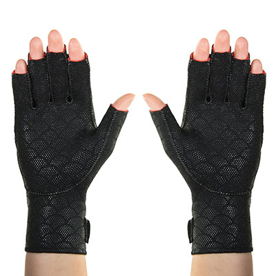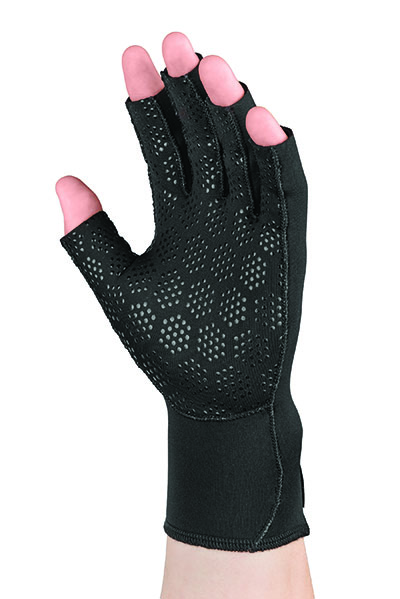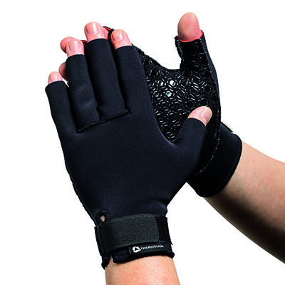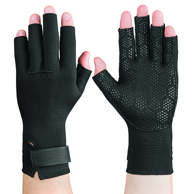 Thermoskin Arthritis Compression Gloves are designed to relieve arthritic pain in the fingers and hand. They are anatomically shaped to provide warmth and even compression for arthritic pain relief. A textured inner layer provides additional grip for everyday activities. Open fingertips allow a better sense of touch. Adjustable wrist closure is easy to apply and provides a better fit. The medium size is great for hands measuring 8 to 9 inches (21-23 cm). In order to get the right size, measure the circumfrence around your knuckles. Sold in a pair.