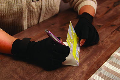 Thermoskin Arthritis Gloves are specifically designed to relieve arthritic pain in the fingers and hand. They are anatomically shaped to provide warmth and even compression for the temporary relief of arthritic pain. A smooth nylon outer layer provides comfort while you are sleeping and finger tips openings provide a better sense of touch. Adjustable wrist closure is easy to apply and provides a better fit. The large size is great for hands measuring 9.25 to 10.5 inches (24-26 cm). In order to get the right size, measure the circumfrence around your knuckles. Sold in a pair.