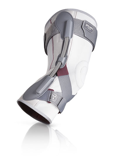 Enjoy streamlined stabilization and compression for knee pain with the Push Sports Knee Brace that will not slip down. The Push Sports Knee Brace is the ideal brace for women or men with osteoarthritis/rheumatoid arthritis of the knee, patellofemoral pain or mild patella instability, mild instability after trauma/injury to collateral ligament/s, post-operative protection after cruciate ligament surgery at end stage of rehabilitation. The hidden innovative hinges allow full bending of the knee while your kneecap is supported on both sides. The brace is latex free and machine washable. Measure just below your knee (Size 1: 27 to 31 cm, Size 2: 31 to 35 cm, Size 3: 35 to 40 cm, Size 4: 40 to 45 cm).