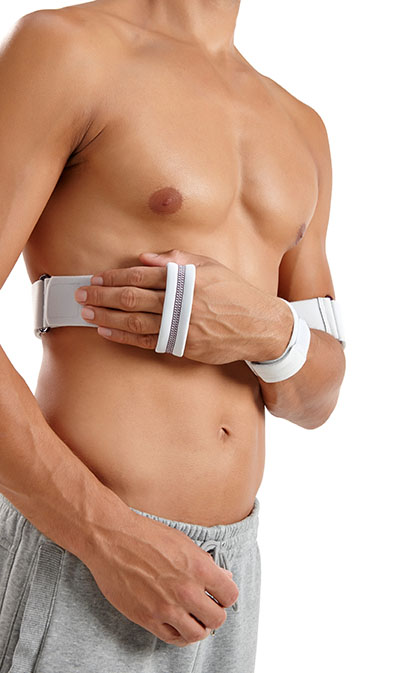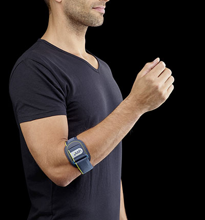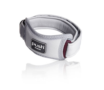 Keep hitting the ball as the Push Sports Elbow Brace relieves your tennis/golfer's elbow pain. Pressure from the soft springy pad comfortably controls your pain while keeping the brace from slipping?even when you are sweaty. It is latex free and machine washable. The Push Sports Elbow Brace is available in ONE SIZE which fits elbow measurements of 7 7/8 to 14 inches (20-36 cm) and can be worn either on the RIGHT or LEFT arm. Measure around the arm with the elbow bent.