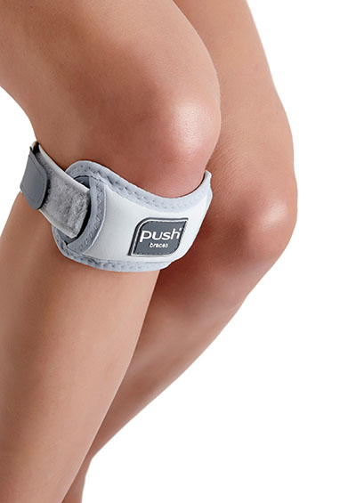 Relieve your pain with the agreeable pressure of the Push Sports Patella Brace. The Push Sports Patella Brace is the ideal brace for women or men with patellofemoral pain, Jumper's knee, Osgood-Schlatter disease, and Patellar tendonitis. This latex free, machine washable brace with minimal material in knee cavity will not slip, even during competition! Measure around the lower part of your knee, as shown. The Push Sports Patella Brace is available in ONE SIZE which fits knee measurements of 27-45 cm and can be worn either on the RIGHT or LEFT knee.