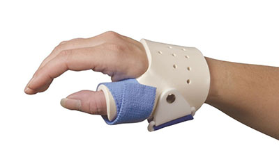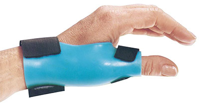 AliMed FREEDOM Rigid Thumb Spica protects the thumb-injured patient suffering from navicular injury, scaphoid injury, acute de Quervain's syndrome, and tendonitis. Positions thumb in opposition while eliminating motion of MP and CMC joints. Rigid Kydex shell lined with Evazote foam. Spiral wrap, elastic loop straps. Adjust shell with a heat gun. Beige. Specify size and Left or Right, see sizing below. Sizing: Measure width of MP joints from radial aspects of index finger to ulnar aspect of little finger. Small: 2-1/2" to 2-3/4". Medium: 2-3/4" to 3-1/4". Large: 3-1/4" to 3-3/4".
